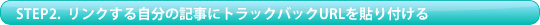 コピーしたアドレスを自分の記事編集画面の下にある[トラックバックを以下のアドレスに送信]というところに書き加えます。再度保存を行ったらトラックバック完了です。 |